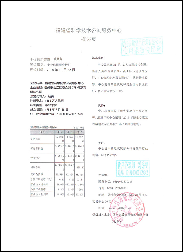 福建省科學技術咨詢服務中心2018