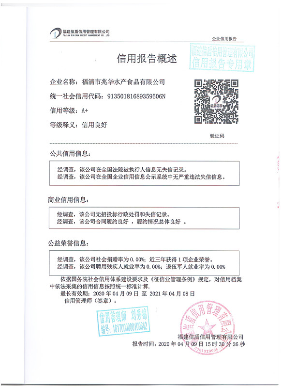 福清市兆華水產食品有限公司2020-3