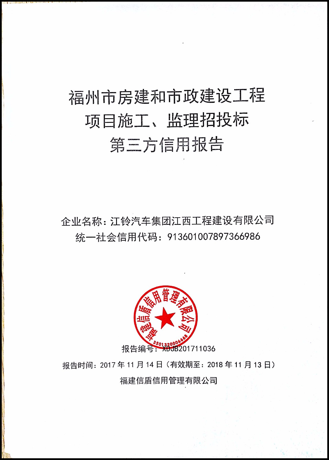 江鈴汽車集團江西工程建設有限公司 XDJB201711036