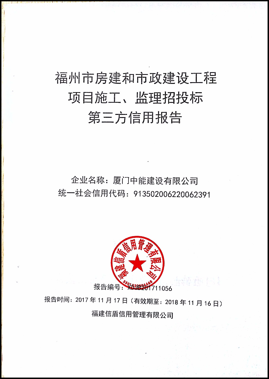 廈門中能建設有限公司 XDJB201711056