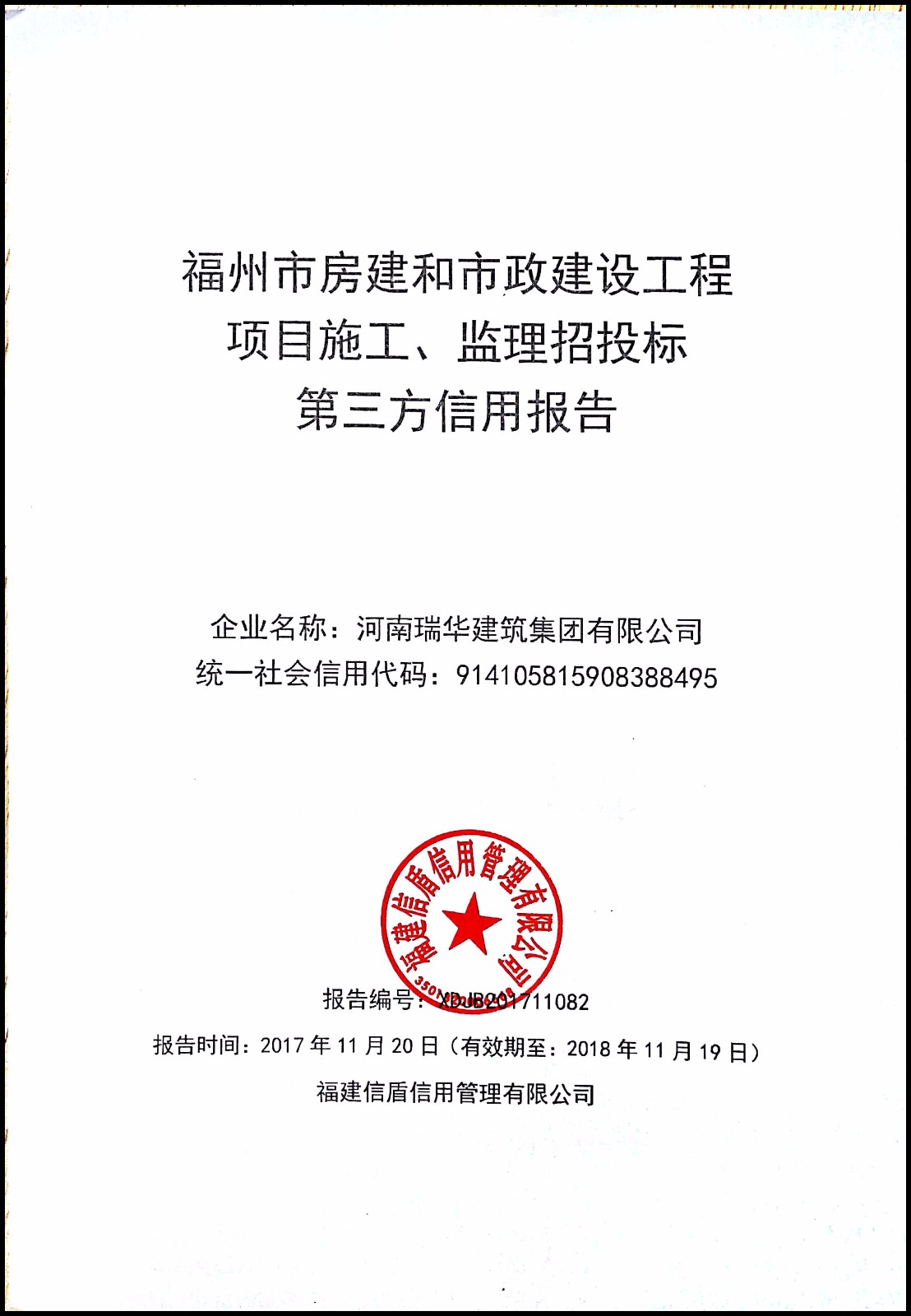 河南瑞華建筑集團有限公司 XDJB201711082