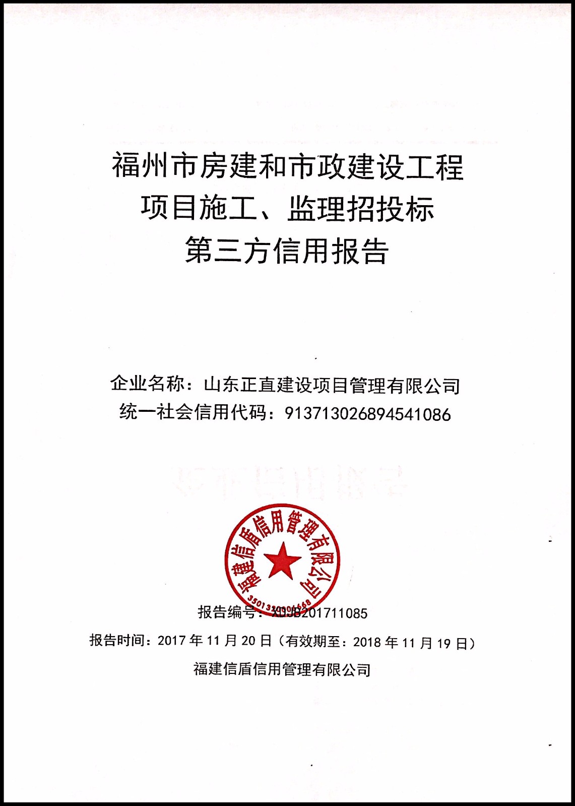 山東正直建設項目管理有限公司 XDJB201711085