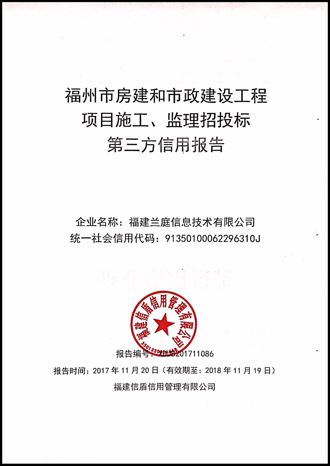 福建蘭庭信息技術有限公司 XDJB201711086
