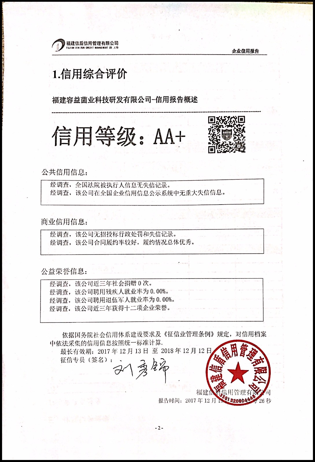福建容益菌業科技研發有限公司 XDBG201712007
