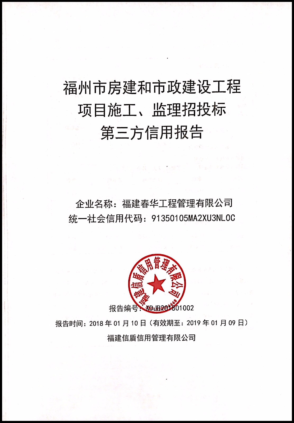 福建春華工程管理有限公司 XDJB201801002