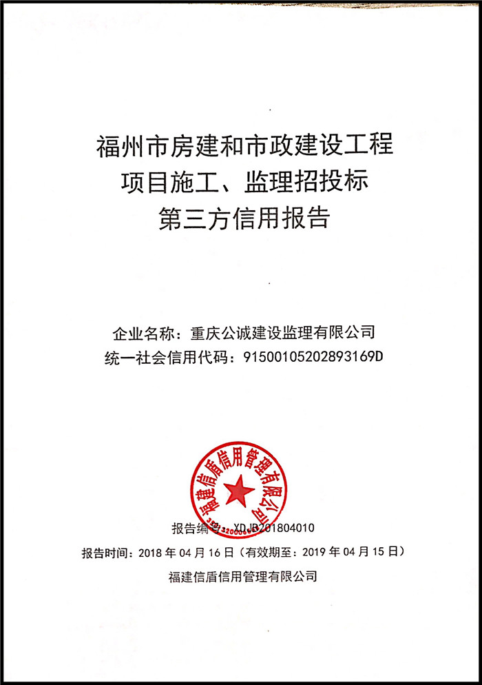 重慶公誠建設監理有限公司 XDJB201804010
