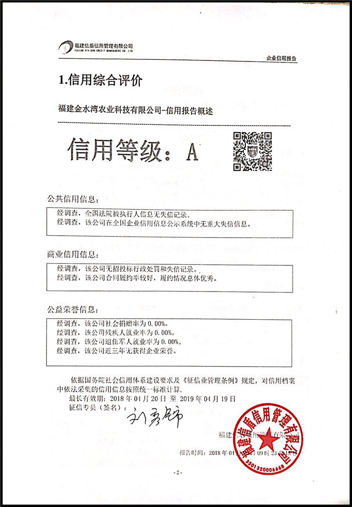 福建金水灣農業科技有限公司 XDBG201804020
