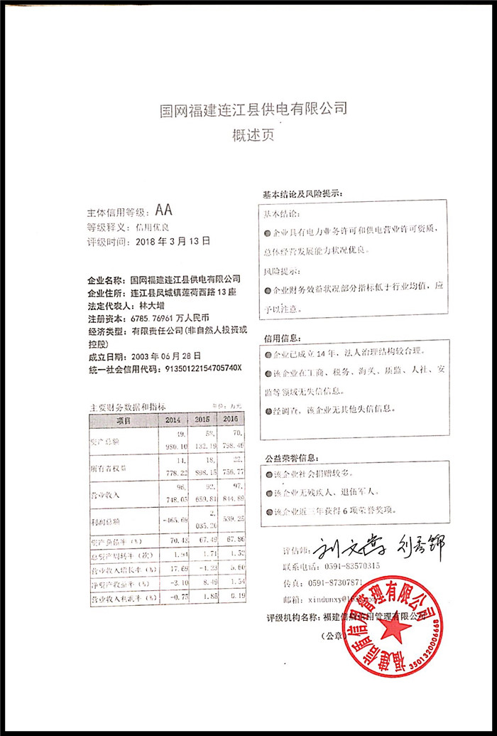 國網福建連江縣供電有限公司 XDPJ201803101
