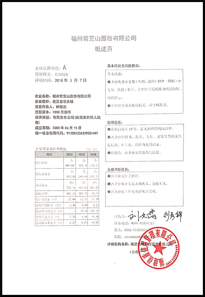 福州青芝山面粉有限公司 XDPJ201803106