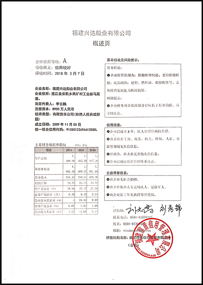 福建興達船業有限公司 XDPJ201803151