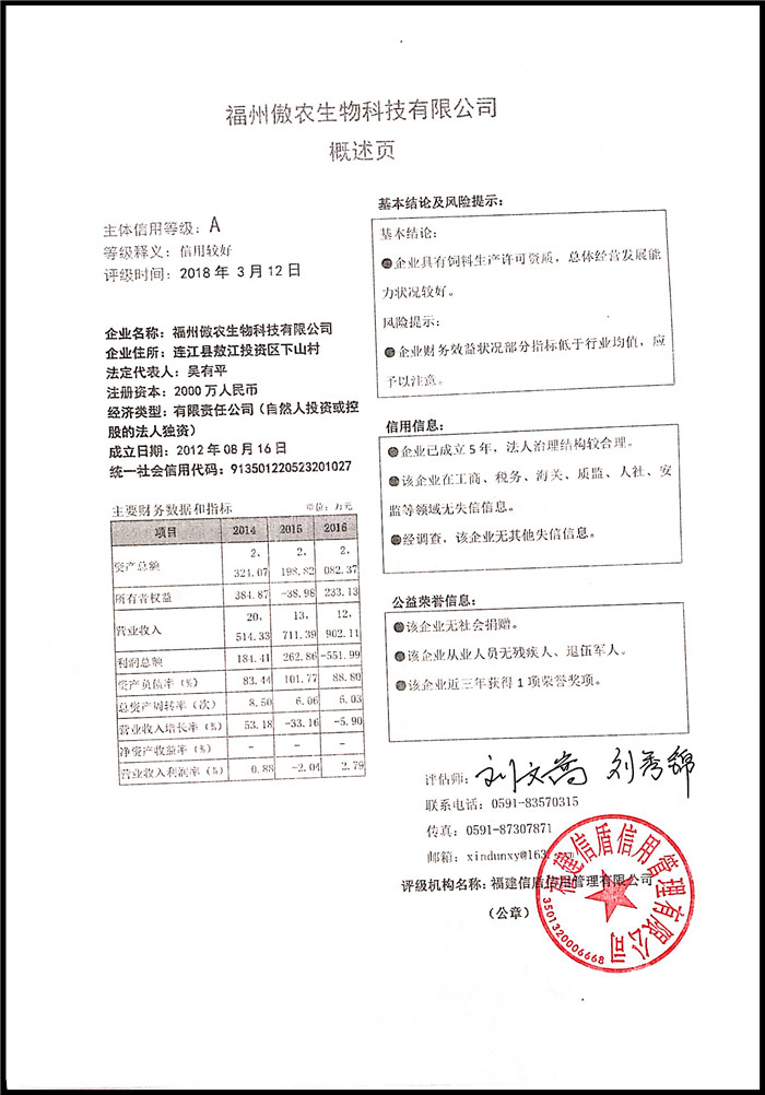 福州傲農生物科技有限公司 XDPJ201803180