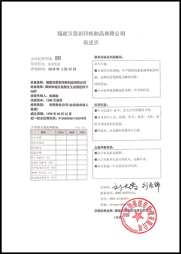 福建漢霖彩印紙制品有限公司 XDPJ201803191