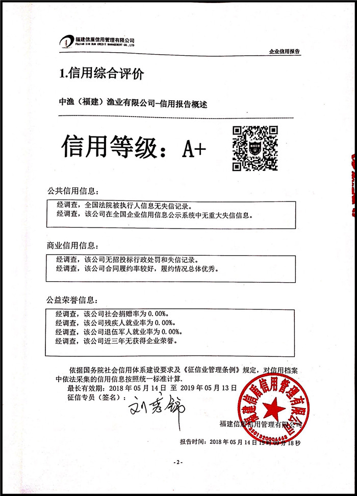 中漁(福建)漁業有限公司 XDBG201805008