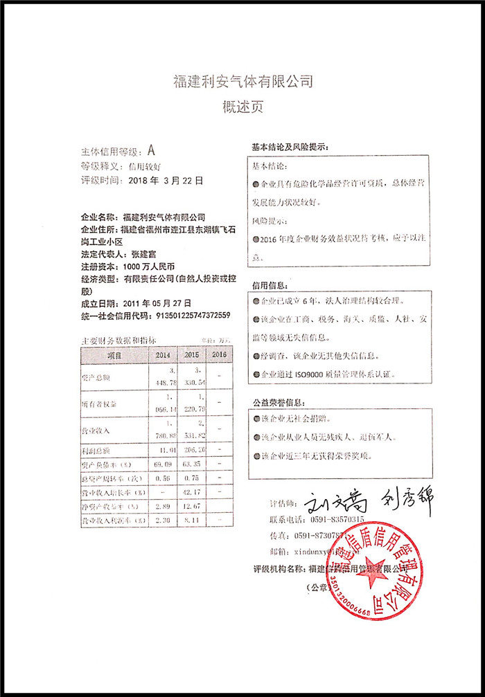 福建利安氣體有限公司 XDPJ201803202