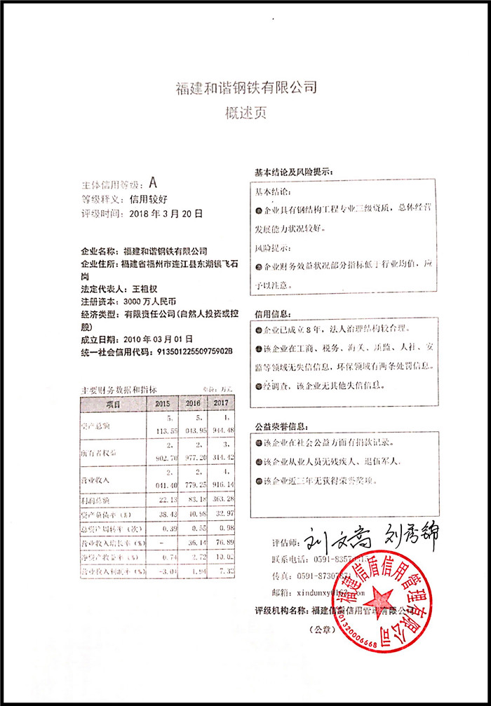 福建和諧鋼鐵有限公司 XDPJ201803207