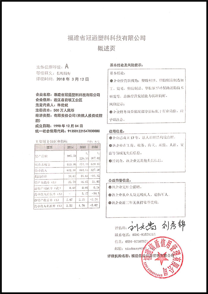 福建省冠通塑料科技有限公司 XDPJ201803216
