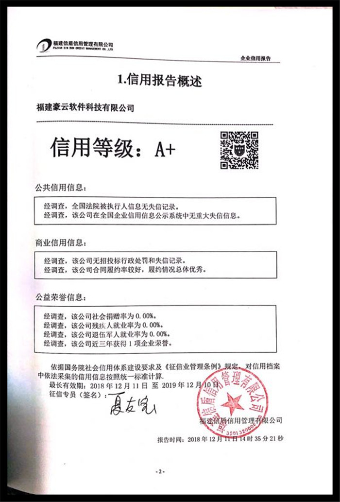 福建豪云軟件科技有限公司 XDBG201812141
