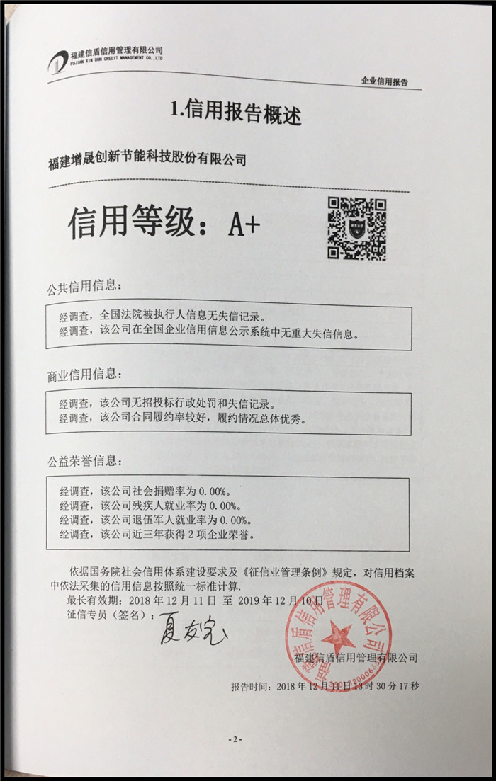 福建增晟創新節能科技股份有限公司 XDBG201812140