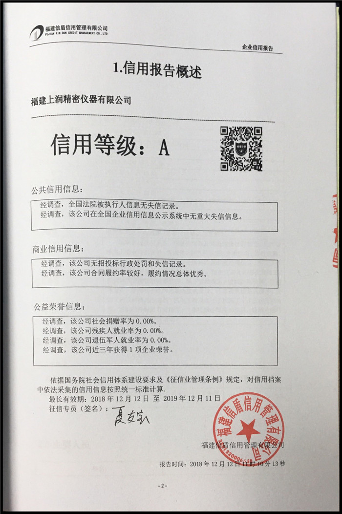 福建上潤精密儀器有限公司 XDBG201812104