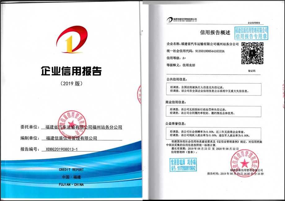福建省汽車運輸有限公司福州站務分公司2019-1